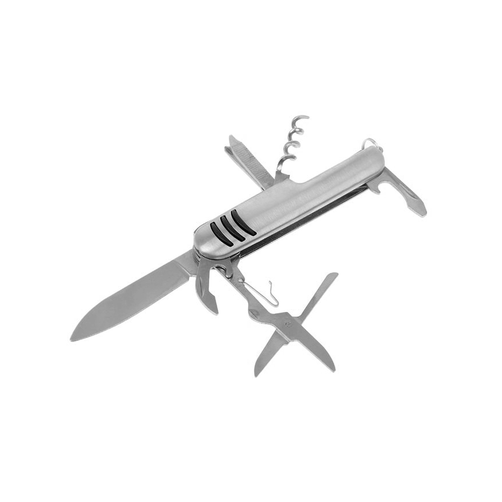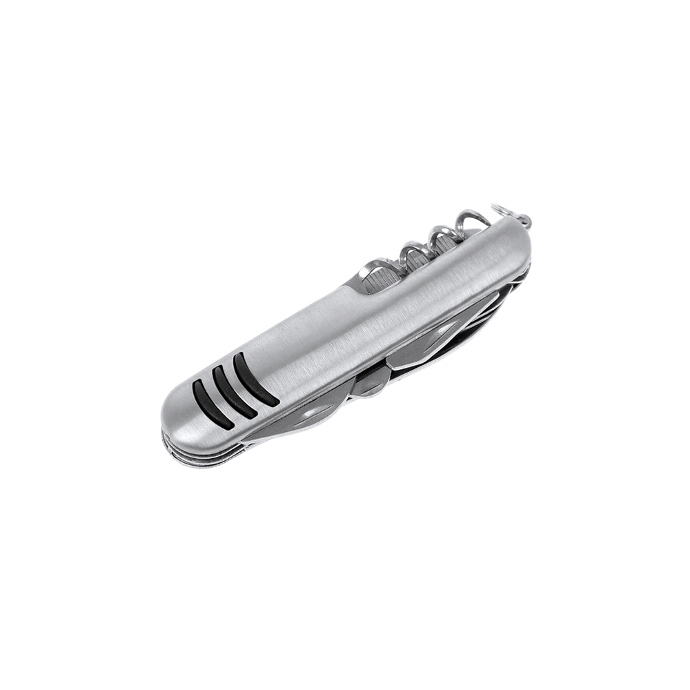 - Функции: Штопор, Нож, Пилочка, Крестовая отвертка, Ножницы, Кольцо для ключей, 2 открывашки.