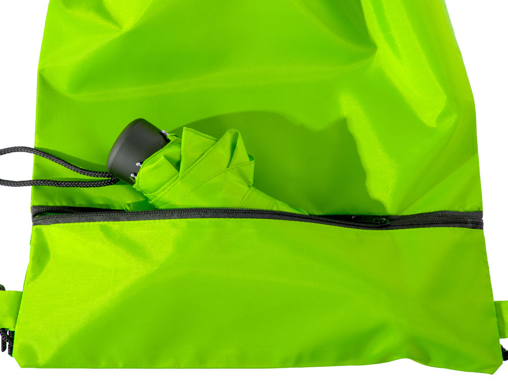 Механический зонт с прорезиненной ручкой идет в комплекте с сумочкой для покупок. На дне сумочки предусмотрен карман на молнии, в котором вы можете хранить зонт дома или прятать в него мокрый зонт, когда вы попали под дождь. Находясь в кармане сумочки, мокрый зонт не доставит неудобств. Сумочка имеет 2 варианта использования: шопер с двумя 2 ручками и рюкзак-мешок со шнурками. -