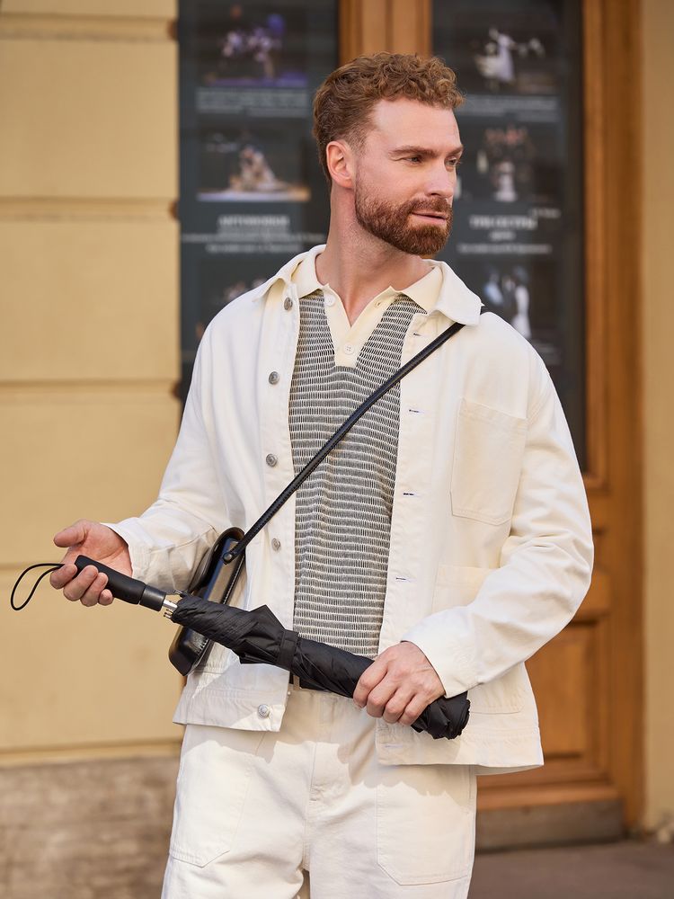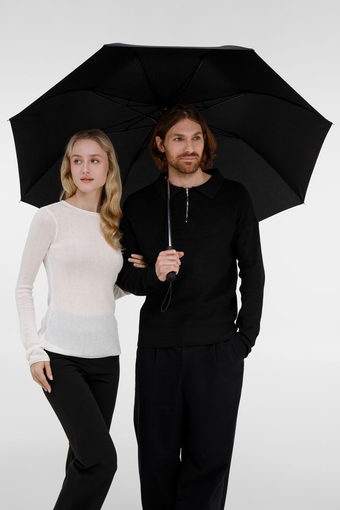 - Пластиковая матовая эргономичная ручка с эластичной петлей и кнопкой автоматического открывания зонта