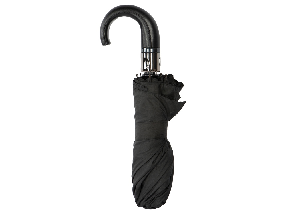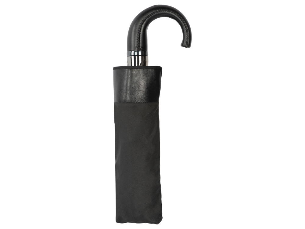 Зонт-автомат для деловых людей отличается стильным лаконичным дизайном с отделкой из искусственной кожи. Благодаря спицам из стекловолокна сможет выдержать порывы сильного ветра. На широкий фиксирующий ремешок можно нанести ваш логотип. -