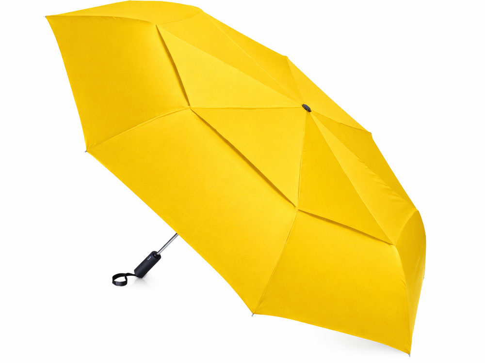 Купол этого складного зонта-автомата состоит из двух полотен и имеет большой диаметр 127 см. Прочный каркас и спицы из стекловолокна устоят при порывах ветра. Благодаря этому зонт служит надежным укрытием в самый сильный дождь. Закрывается в 3 сложения. Ручка обработана мягким покрытием soft-touch. Широкий хлястик для удобства персонализации. -