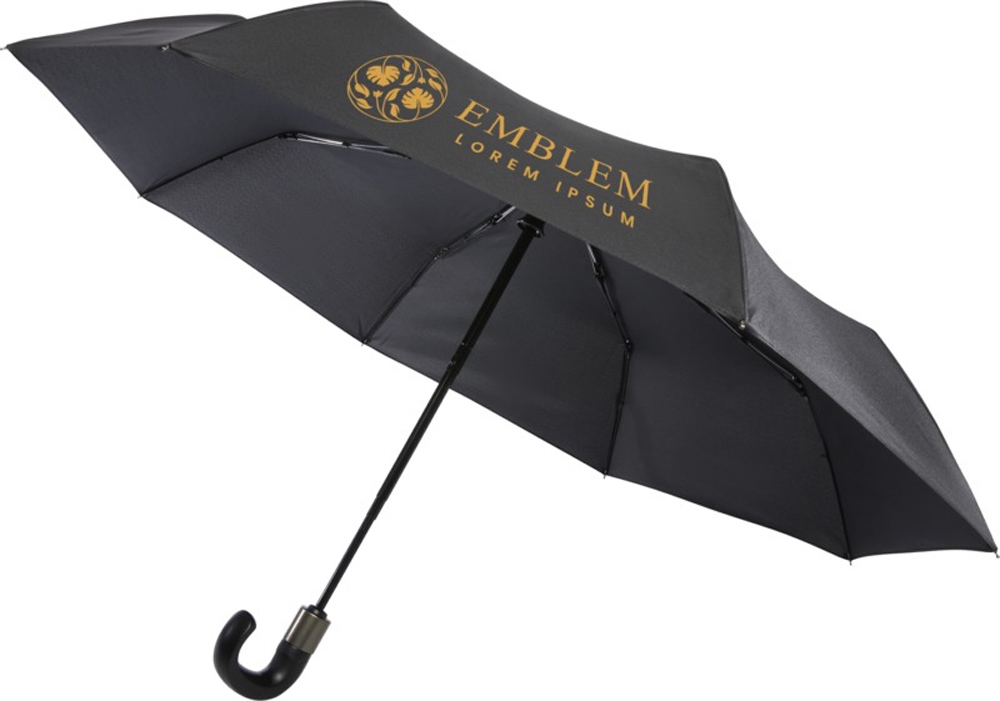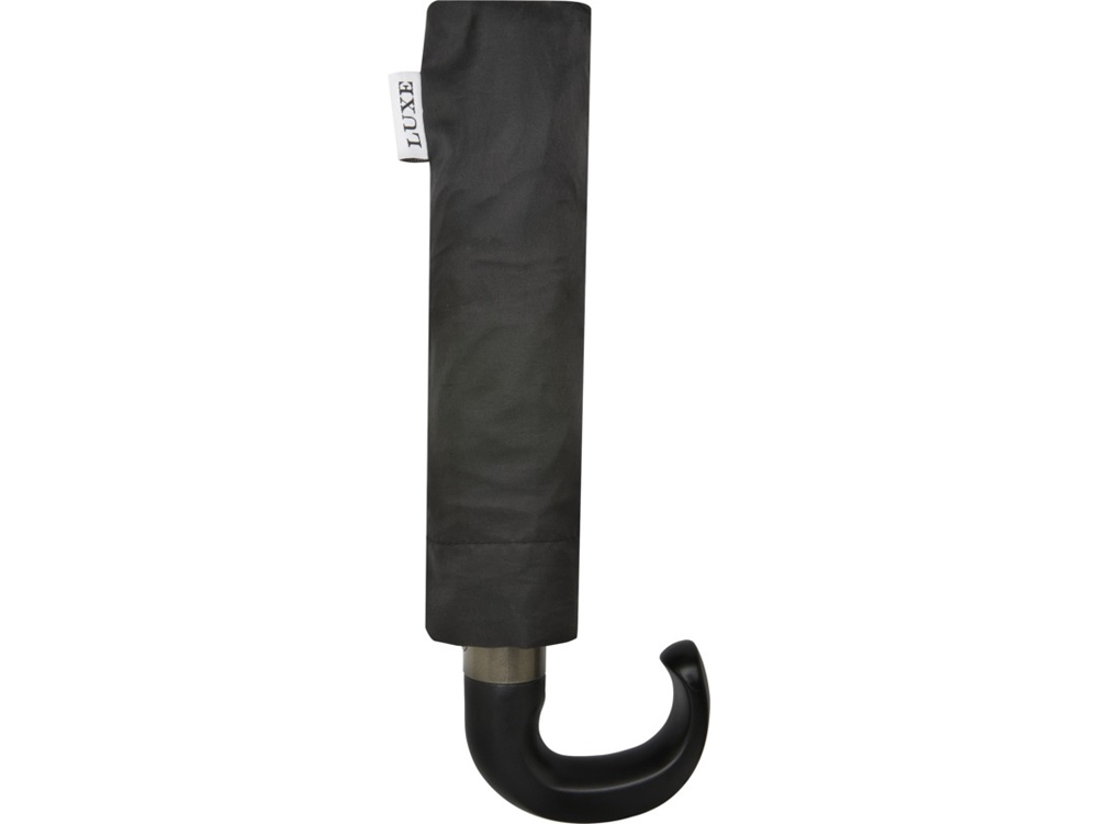 Автоматически открывающийся и закрывающийся складной зонт с куполом из эпонж полиэстера. Прочный металлический стержень, высококачественная рама со спицами из стекловолокна обеспечивают максимальную гибкость в ветреную погоду. Поставляется с чехлом и может легко поместиться в сумку или рюкзак для удобного ношения. Изогнутая ручка с мягким покрытием Soft Touch с деталями из матовой нержавеющей стали и наконечниками с черным никелевым покрытием. Тканые ярлыки с фирменными деталями Luxe на куполе, чехле и застегивающемся ремешке. Большая зона для декорирования на каждой панели купола. . Полиэстер Эпонж. -