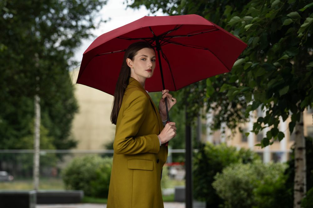 Элегантное решение классического зонта — с надежной ребристой ручкой и насыщенными оттенками купола.- Зонт-автомат, 3 сложения, 8 спиц