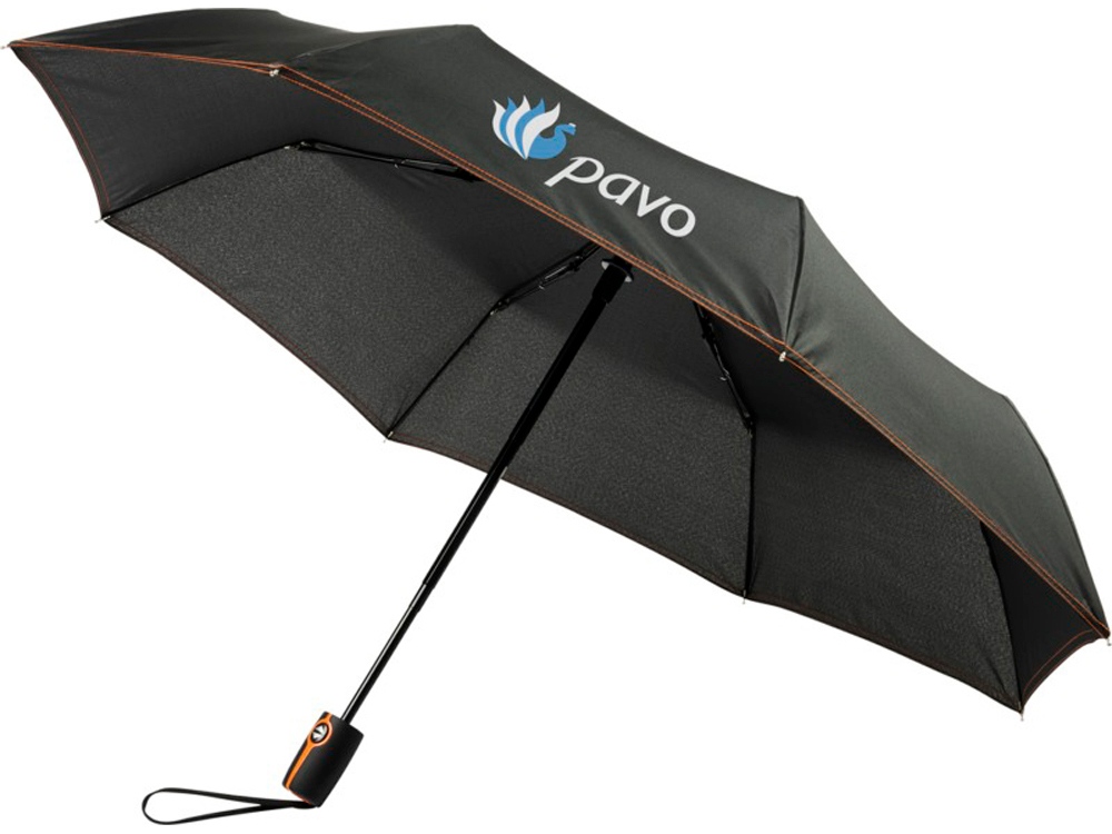 21-дюймовый складной автоматически открывающийся/закрывающийся зонт Stark-mini с куполом из эпонж полиэстера. Прочный металлический стержень, высококачественная рама со спицами из стекловолокна, обеспечивающая максимальную гибкость в ветреную погоду. Поставляется с чехлом и может легко поместиться в сумку или рюкзак для удобного ношения. На ручке с мягким матовым покрытием присутствуют цветные элементы, а части купола и чехла прошиты. -