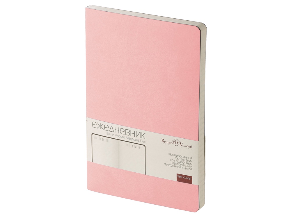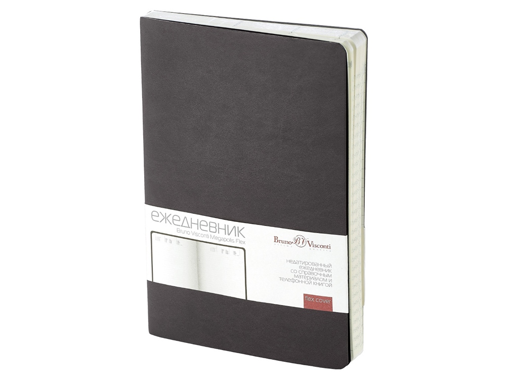 Недатированный ежедневник Megapolis Flex от бренда Bruno Visconti - это качественный корпоративный подарок по выгодной цене, произведенный специально под персонализацию. Представлен в универсальном формате А5 и состоит из 272 страниц. Элегантная закругленная flex обложка из гладкого кожзама имеет гибкую конструкцию и приятна на ощупь. А интегральный переплет позволяет сэкономить место в деловой сумке или портфеле – ежедневник можно просто свернуть в трубку или согнуть пополам.