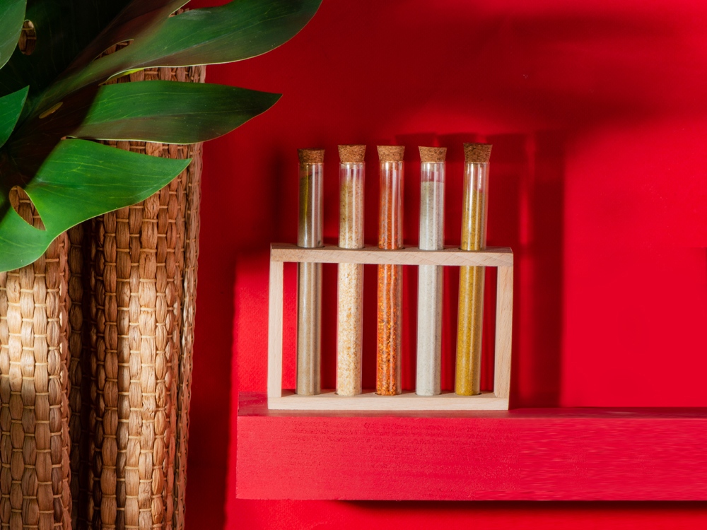подставка- 15 х 3,5 х 10 см, колба со специями- d1,6 х 16