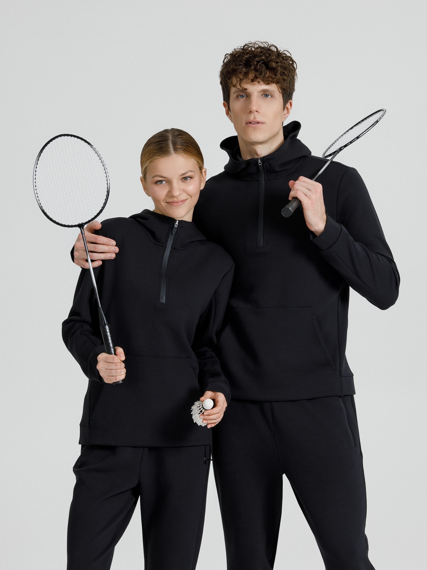 волан: голова - ЭВА, юбка - гусиное перо; ракетка: обод - алюминий, стержень - сталь; чехол - полиэстер