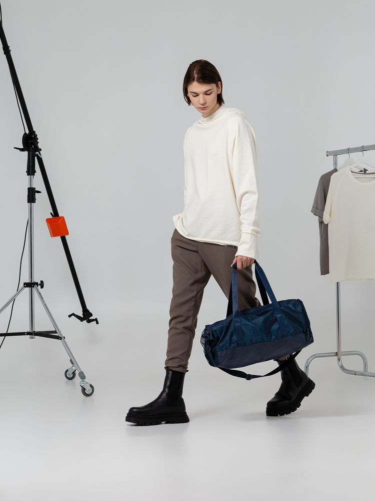 Цвет Outer Space лег в основу коллекции сумок Triangel, позволяя создать модное монохромное сочетание с изделиями Manevr темно-синего цвета. Изделия изготовлены из шелковистого полиэстера, в отделке использована лазерная перфорация паттерна.- Выдерживает нагрузку до 12 кг