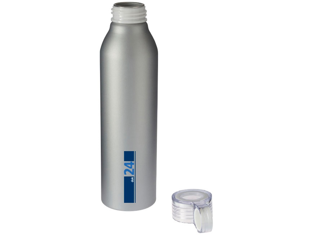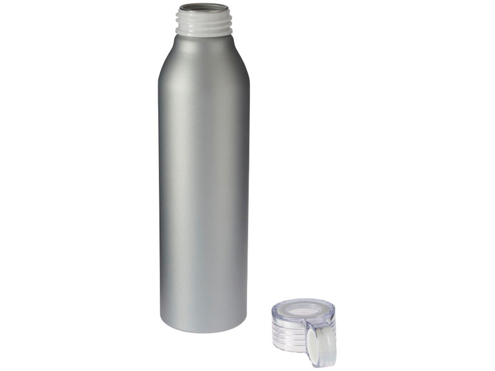 Спортивная алюминиевая бутылка Grom. Одинарные стенки. Откручивающаяся крышка с защитой от протекания и цветным акцентом. Удобная в пути. Объем 650 мл. Алюминий. -