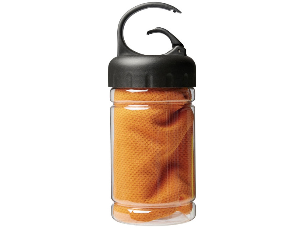 Охлаждающее полотенце Remy в ПЭТ-контейнере. Быстро впитывающее, быстро сохнущее и стираемое охлаждающее полотенце сохраняет прохладу во время тренировок или любых других занятий на свежем воздухе. Поставляется в ПЭТ-контейнере с ручкой и встроенным карабином для удобной переноски. Доступно в 5 ярких цветах. На контейнере изображен большой логотип, он также может быть и на самом охлаждающем полотенце. Размер: 30 x 80 см. PET. 0,096. -
