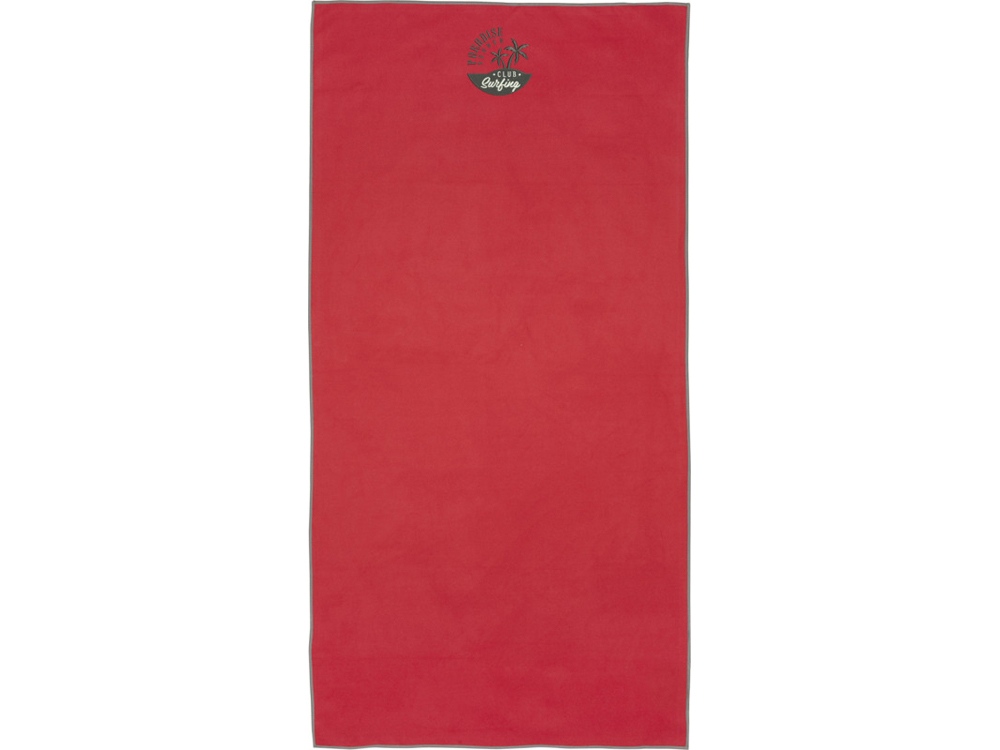 Спортивное полотенце Pieter очень хорошо впитывает влагу, легкое, быстро сохнет, а ткань прочная и очень мягкая. Когда полотенце сложено и закреплено резинкой, оно уменьшается до небольшого размера, поэтому его удобно брать с собой в тренажерный зал, бассейн, на пешую прогулку или в поход. Полотенце размером 50 х 100 см изготовлено из 90 % переработанного полиэстера GRS и 10 % нейлона. Его можно стирать в стиральной машине при температуре 40 °C. В комплект поставки входит мешок для хранения (17 x 13 см), изготовленный из переработанного ПЭТ-пластика, обеспечивающий большую площадь для печати логотипа. 90% Переработанный Полиэстер, 10% Нейлон, 200 g/m2.