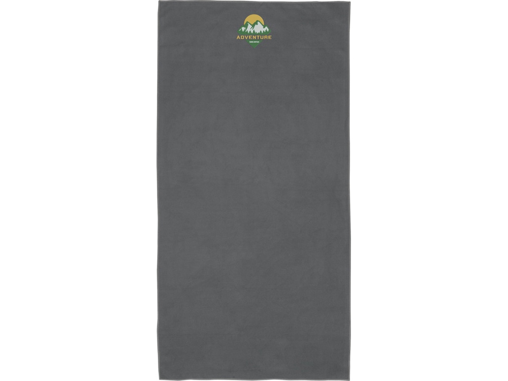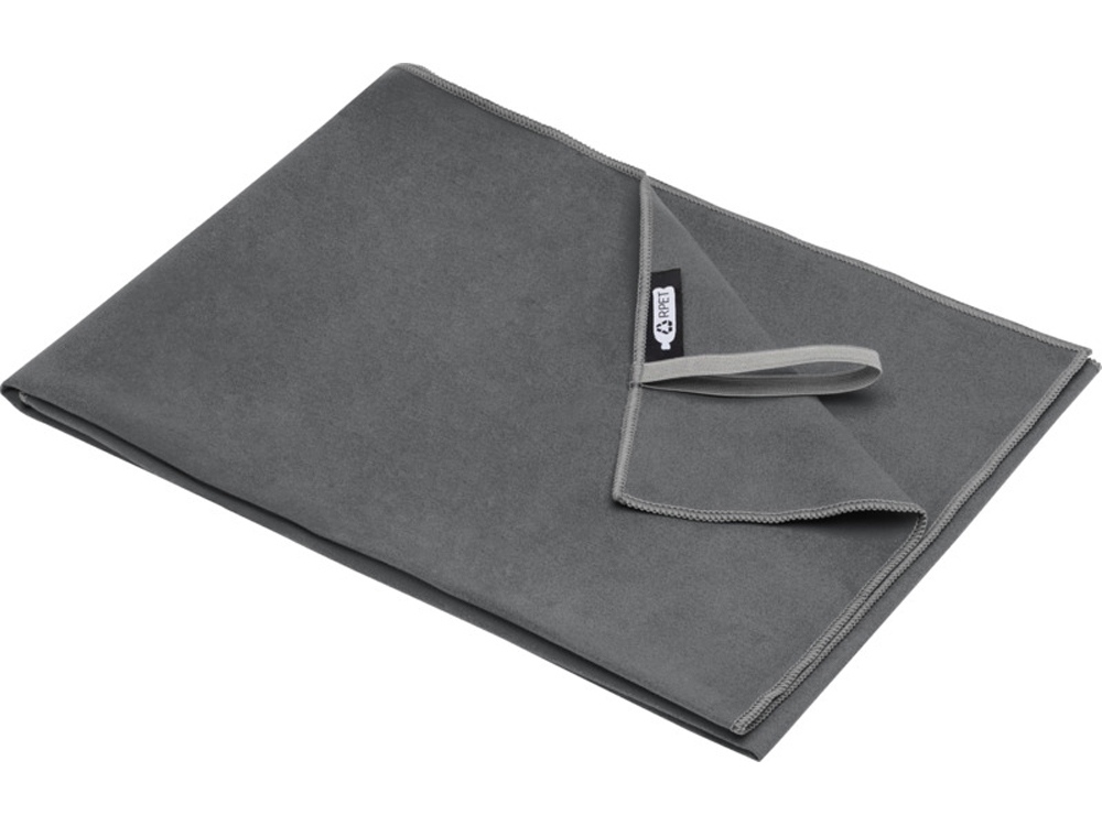Спортивное полотенце Pieter очень хорошо впитывает влагу, легкое, быстро сохнет, а ткань прочная и очень мягкая. Когда полотенце сложено и закреплено резинкой, оно уменьшается до небольшого размера, поэтому его удобно брать с собой в тренажерный зал, бассейн, на пешую прогулку или в поход. Полотенце размером 50 х 100 см изготовлено из 90 % переработанного полиэстера GRS и 10 % нейлона. Его можно стирать в стиральной машине при температуре 40 °C. В комплект поставки входит мешок для хранения (17 x 13 см), изготовленный из переработанного ПЭТ-пластика, обеспечивающий большую площадь для печати логотипа. 90% Переработанный Полиэстер, 10% Нейлон, 200 g/m2. -