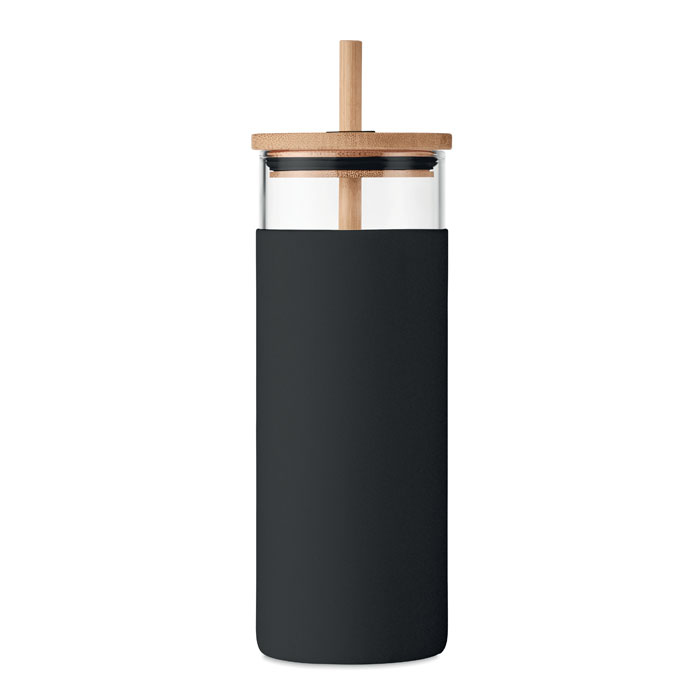 Стакан из боросиликатного стекла с силиконовым защитным чехлом, бамбуковой крышкой и соломинкой. Емкость: 450 мл. Поскольку это кружка одностенная, она нагревается -