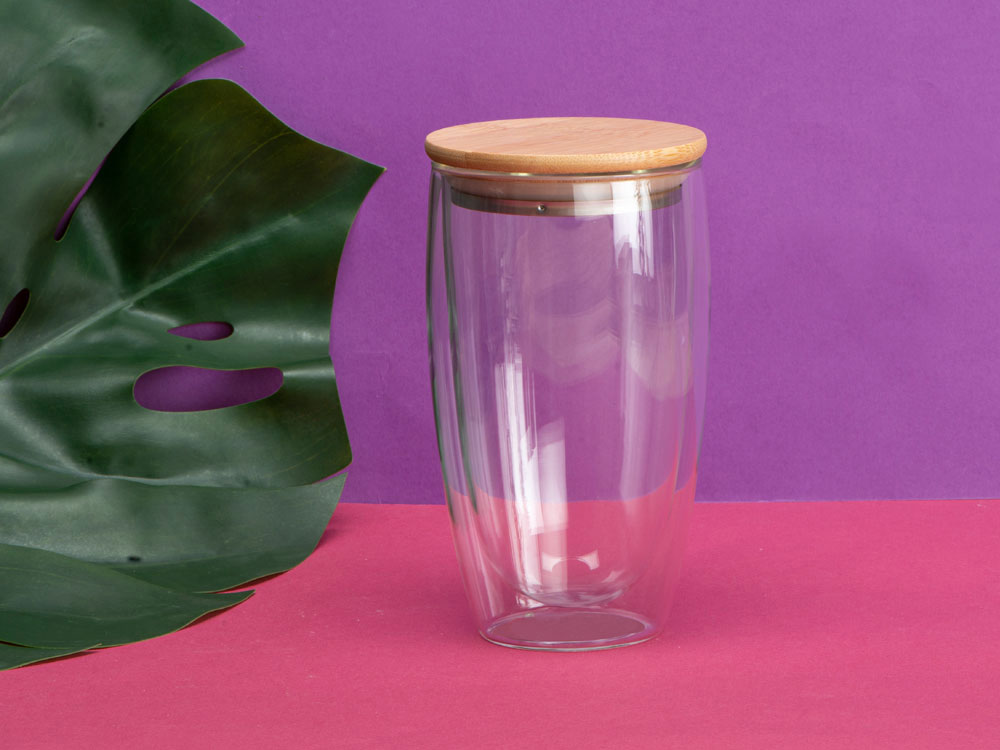 Стакан с двойными стенками и бамбуковой крышкой Batur