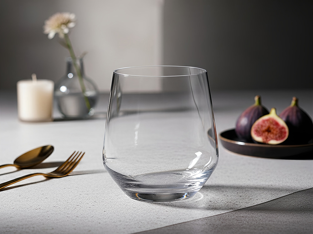 Стеклянный бокал необычной формы — вариант, чтобы разнообразить домашний мини-бар. Подходит не только для крепких напитков, но и для воды, коктейлей и соков.