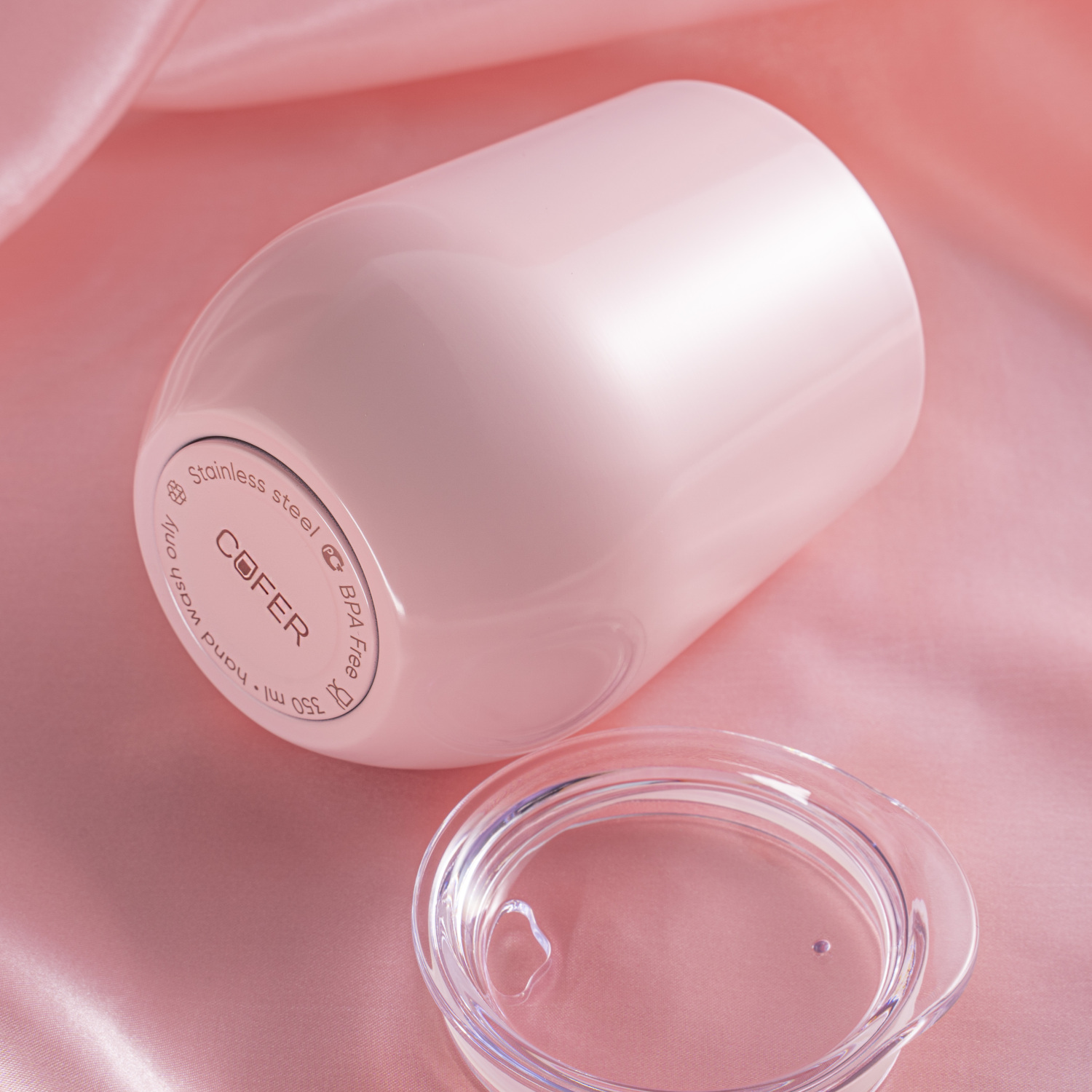 Характерная обтекаемая форма с расширяющейся нижней частью придает коферу оригинальность. Благодаря этой форме, кофер можно использовать для любых напитков: вода, чай, кофе, вино, коктейли - наливайте в кофер все, что захотите, напиток надолго сохранит свою температуру и вкус.