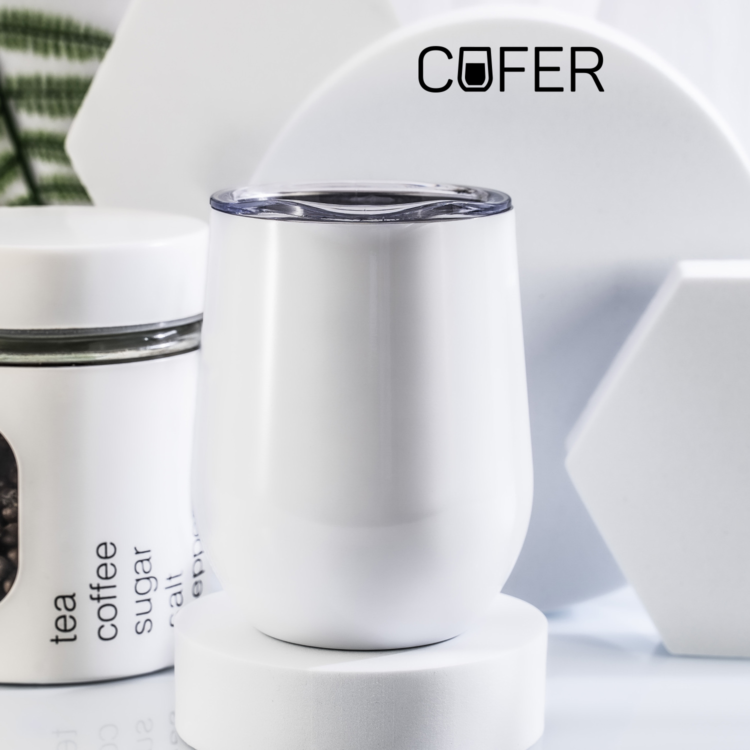 Характерная обтекаемая форма с расширяющейся нижней частью придает коферу оригинальность. Благодаря этой форме, кофер можно использовать для любых напитков: вода, чай, кофе, вино, коктейли - наливайте в кофер все, что захотите, напиток надолго сохранит свою температуру и вкус.