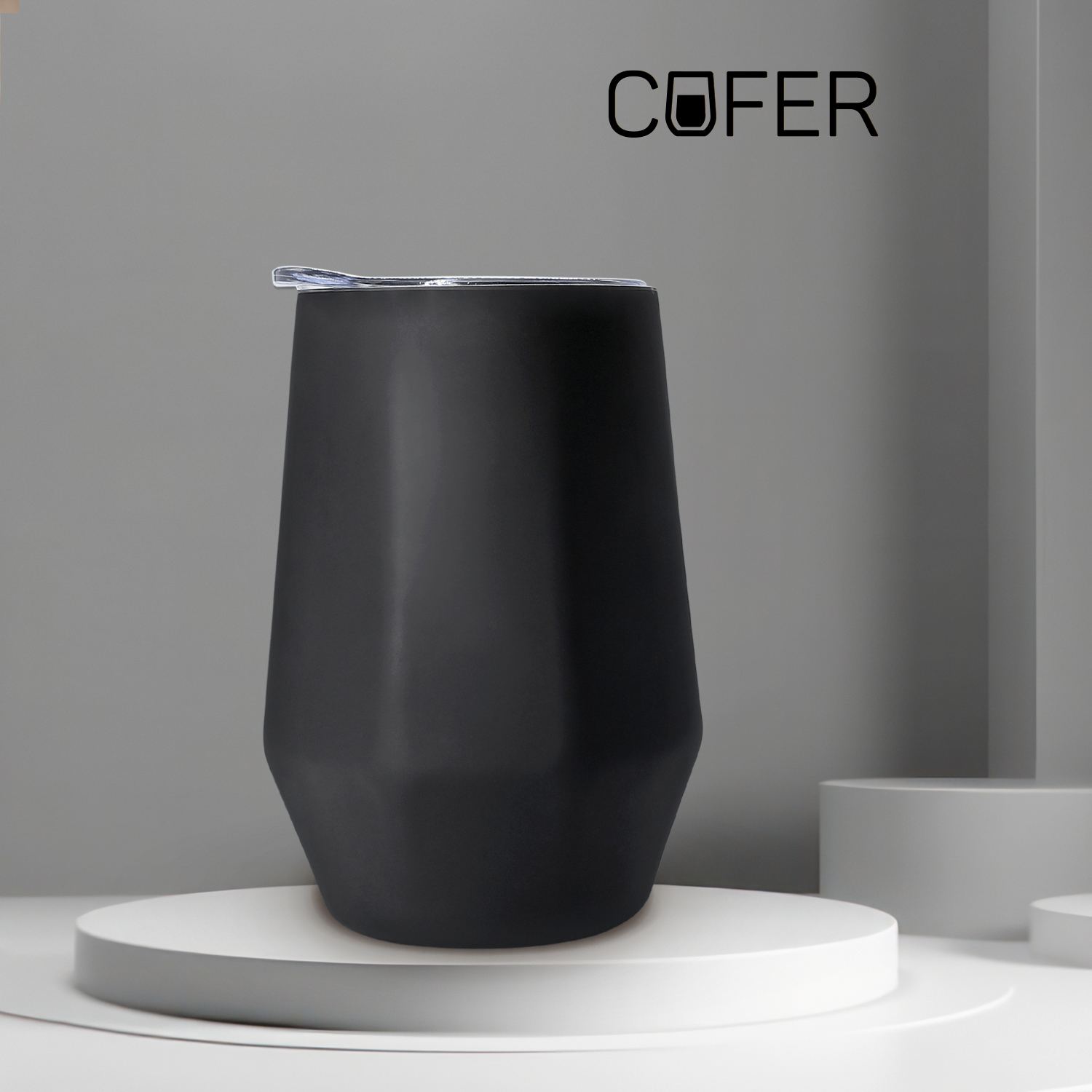 Характерная обтекаемая форма с расширяющейся нижней частью придает коферу оригинальность. Благодаря этой форме, кофер можно использовать для любых напитков: вода, чай, кофе, вино, коктейли - наливайте в кофер все, что захотите, напиток надолго сохранит свою температуру и вкус.