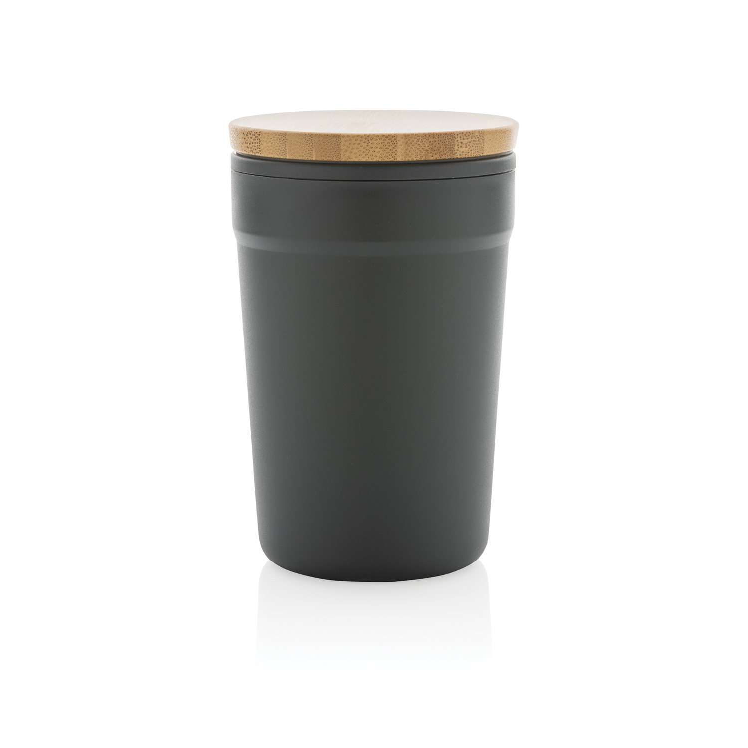 Стакан из переработанного полипропилена GRS с бамбуковой крышкой, 300 мл