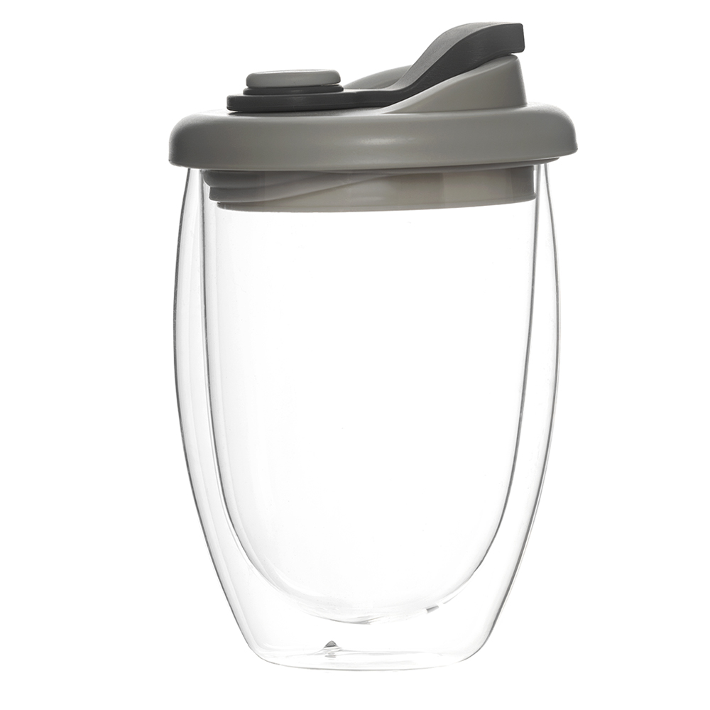 Стакан стеклянный Lotos с двойными стенками и крышкой, серый
