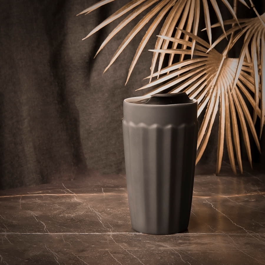 Керамический стакан с двойными стенками, имеет необычную форму с гранямиКорпус имеет прорезиненное покрытие, оно отлично подходит для лазерной гравировки: изображение получается ярким и выделяющимсяПластиковая крышка с силиконовым уплотнителем не даст вашему напитку быстро остыть, но рекомендуется использовать температуру напитков не выше 80СЦвет близкий к Pantone 433UПоскольку стакан имеет двойные стенки - на дне изделия находится технологическое отверстие, которое не является браком.Индивидуальная упаковка - коробка из крафтового картона -