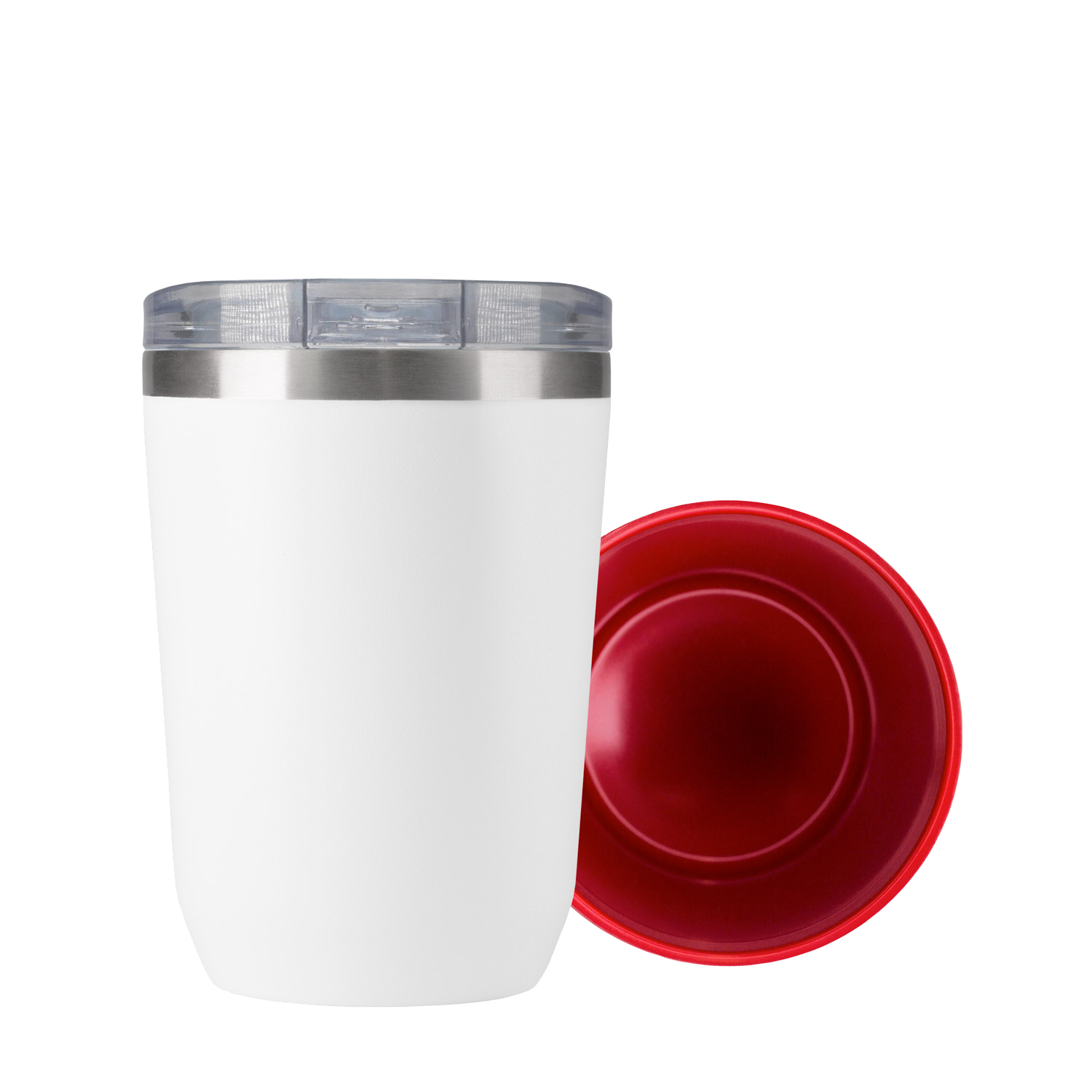 Яркий и необычный дизайн – белое порошковое напыление снаружи, и цветная керамическая эмаль внутри. Кружку удобно держать в руке благодаря ее эргономичной форме, напоминающей классический стакан.