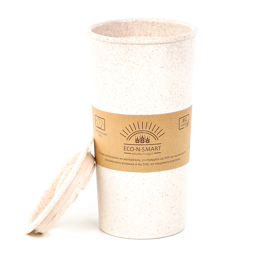 Этот термостакан с внушительным объёмом — не менее 395 мл имеет интересную конструкцию крышки. Она оснащена поворотным механизмом для возможности пить, не снимая крышку. Двойная стенка удержит тепло (или прохладу) вашего напитка, не причиняя дискомфорт рукам. Экологичный материал, состоящий на 50% из пшеничного волокна — удобен и практичен в пользовании. Можно нагревать в микроволновке, но всё же не желательно перегревать больше 80°С, поскольку крышка может не удержать кипяток от протечек. До этого значения, благодаря силиконовому уплотнительному кольцу — вы защищены от пролива.- Виды нанесений: УФ-печать А2, Тампопечать большая, УФ - DTF, УФ-Лак, УФ-Цвет+Лак