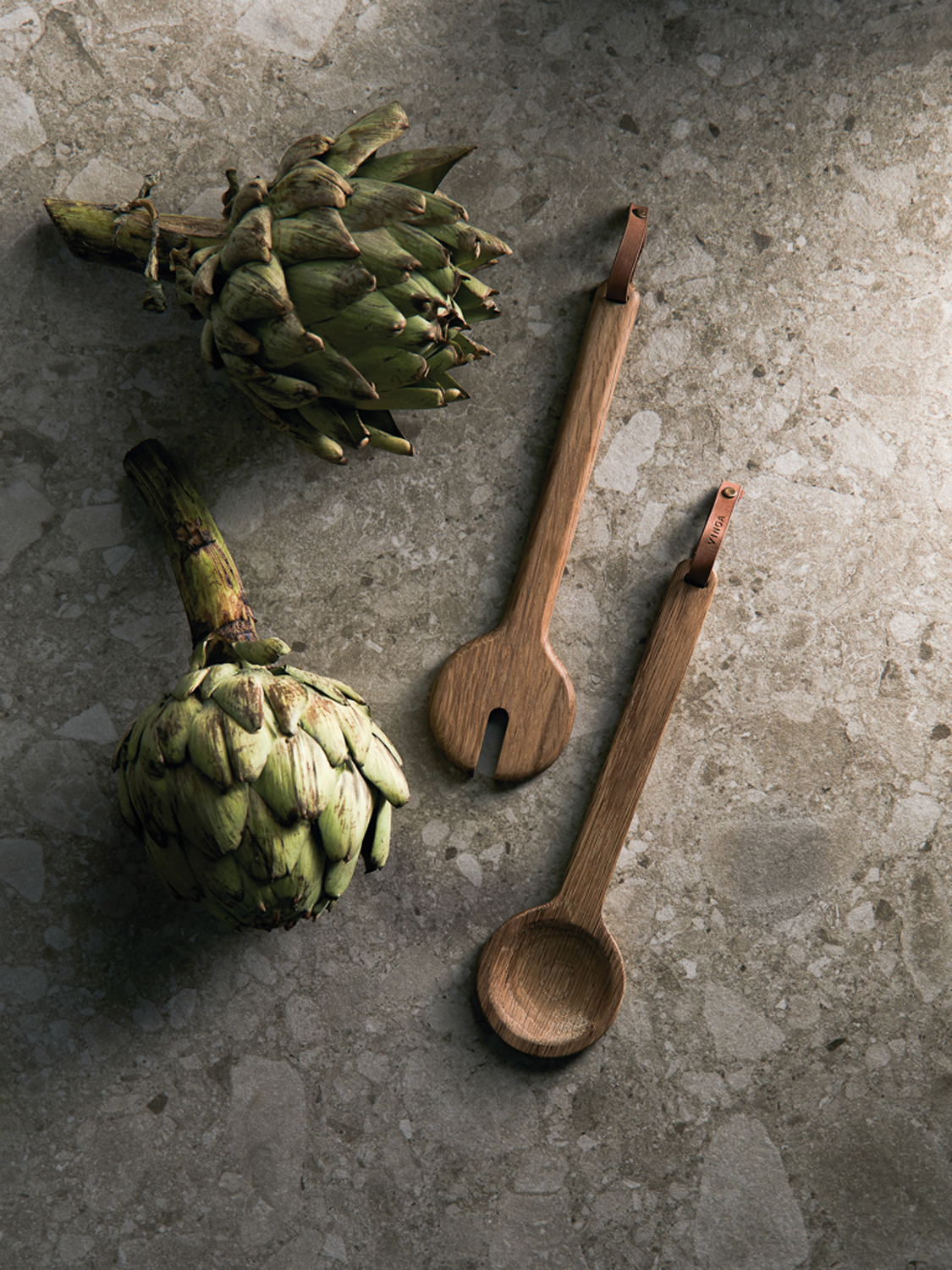 Красивая сервировка переводит ужин на другой уровень. Деревянные приборы — отличный пример того, как даже небольшие детали заставляют взглянуть на салат по-новому. Они изготовлены из древесины дуба, а тонкие петли из искусственной кожи добавляют стильный акцент. Подача блюд будет не только эффектной, но и удобной: приборы отлично подходят для перемешивания и накладывания салатов. Древесина дуба сертифицирована FSC®.