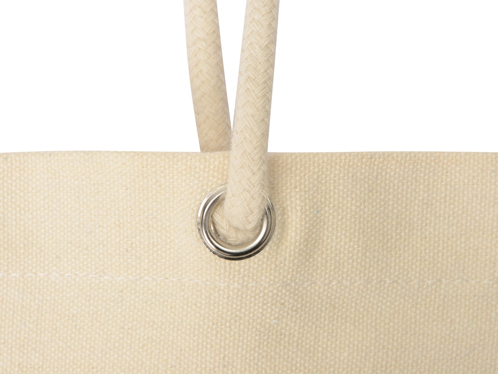 Легкую сумку удобно брать с собой за покупками или на пляж. Ручки из хлопкового шнура на люверсах обеспечивают повышенную прочность. Благодаря высокой плотности хлопка сумка прослужит долго. -