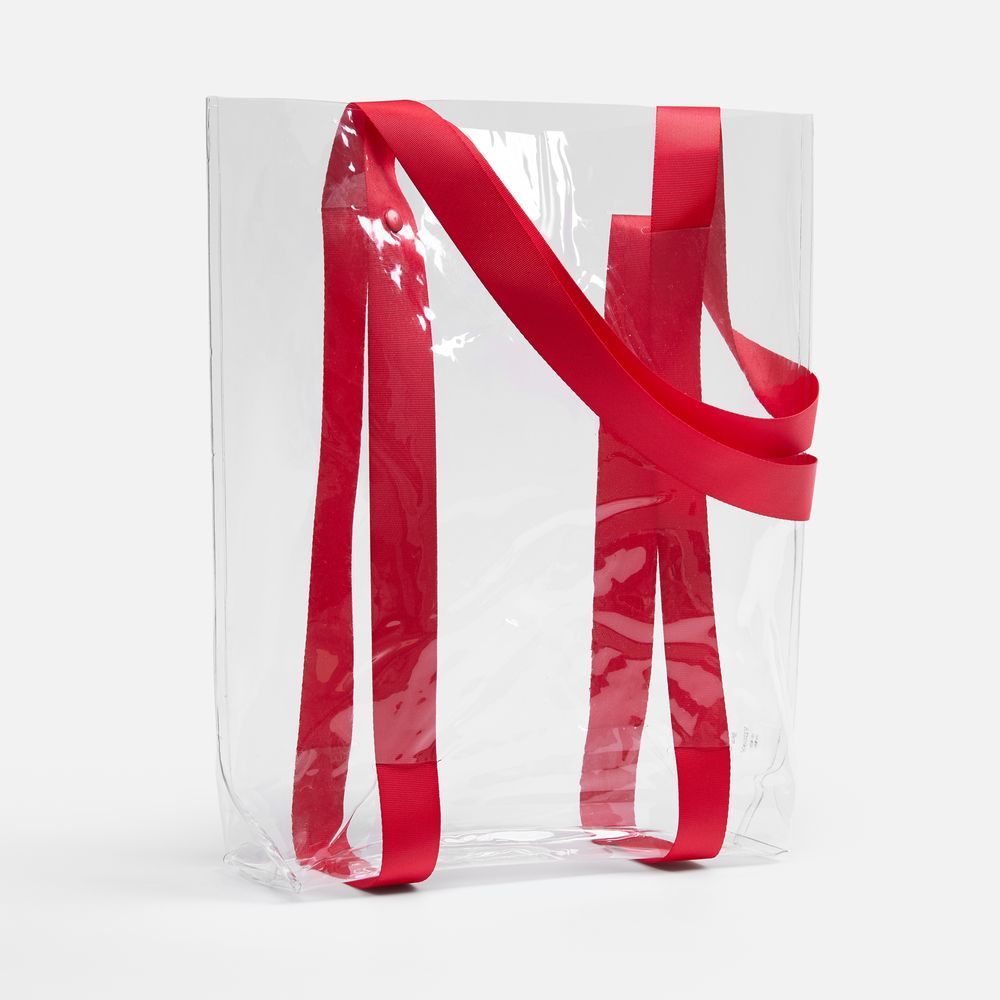 Прозрачные сумки никогда не выйдут из моды. А цветные ручки легко впишутся в брендбук и точно передадут настроение, которое хотелось бы транслировать.