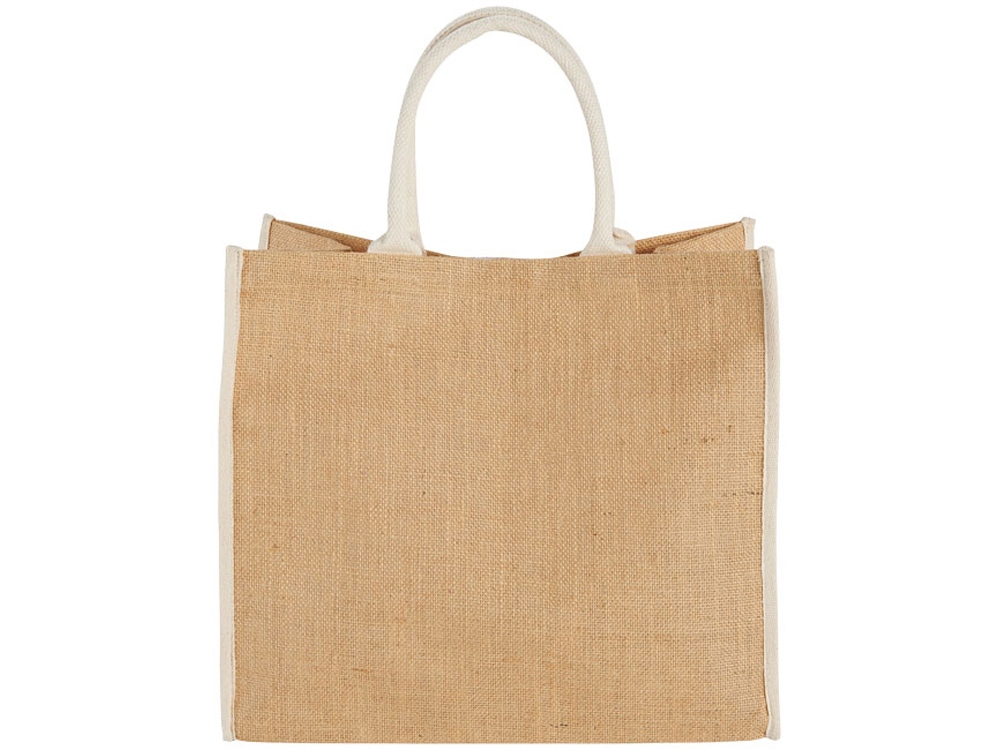 Сумка для покупок. Открытое основное отделение на липучке. Двойные ручки высотой 17 см. Джут. -