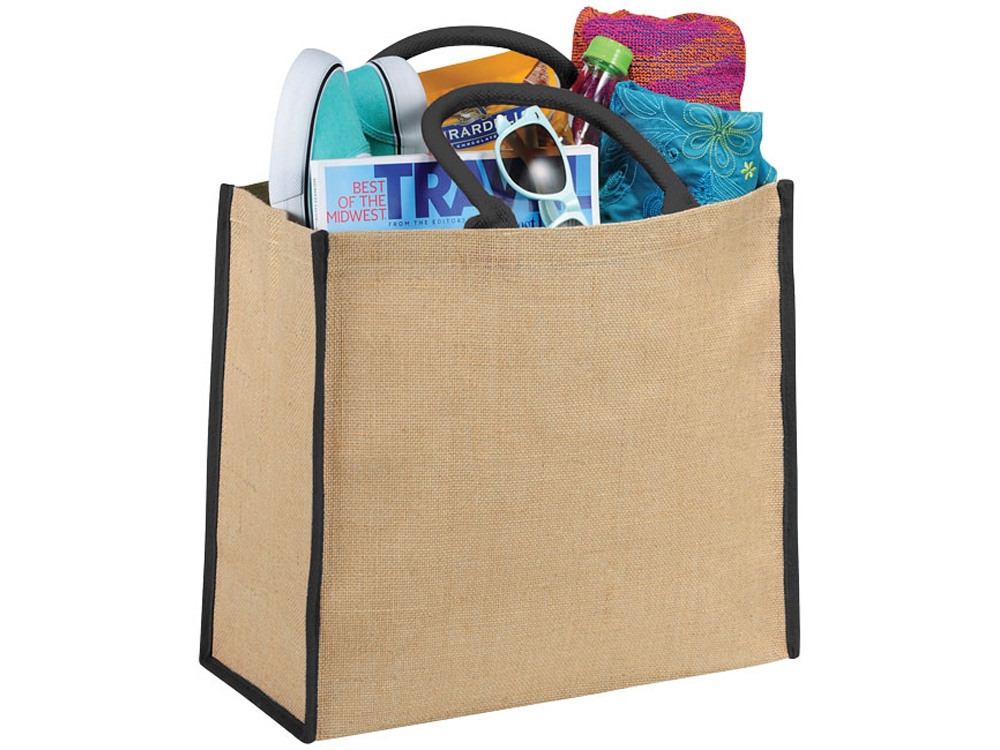 Сумка для покупок. Открытое основное отделение на липучке. Двойные ручки высотой 17 см. Джут. -