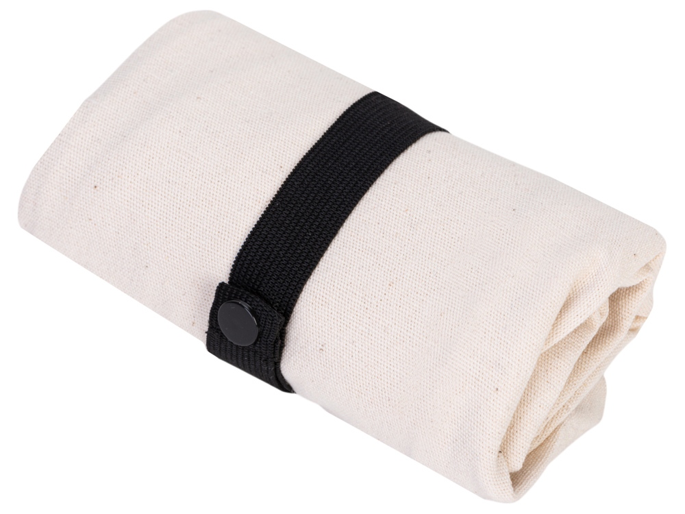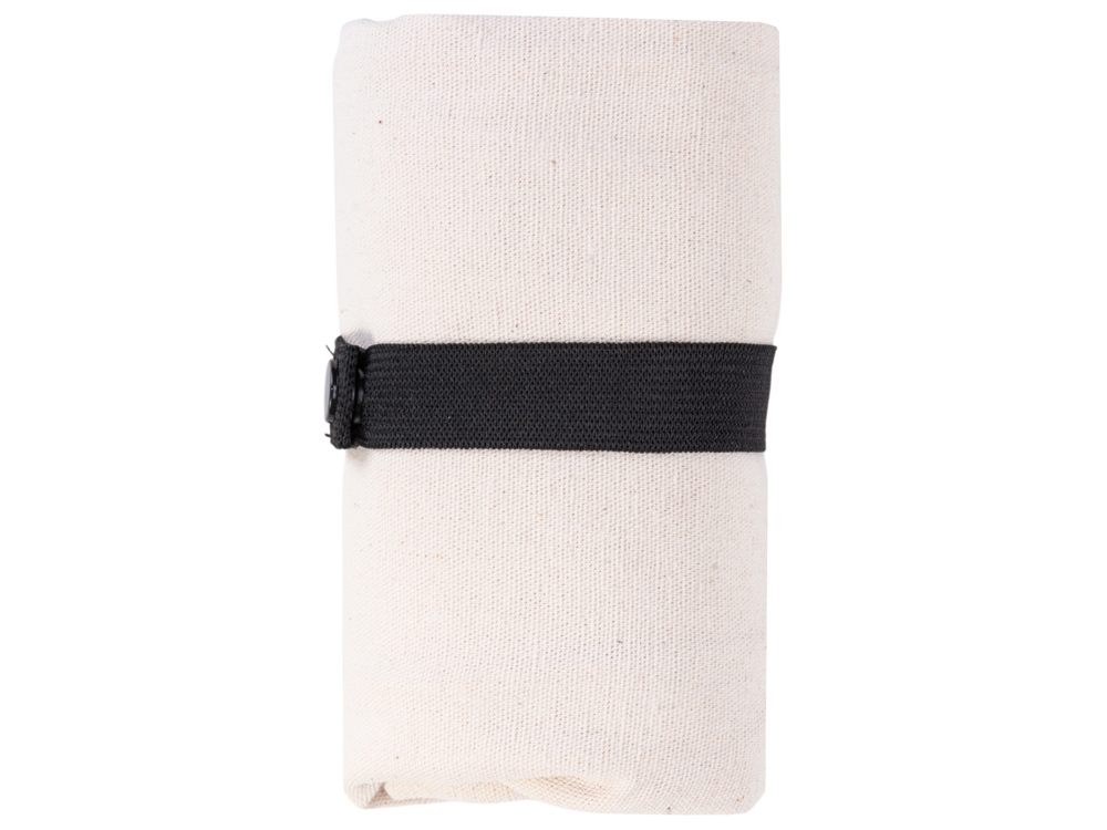Удобная сумка-шоппер из переработанного хлопка. Можно хранить в сложенном виде и фиксировать с помощью эластичной ленты, застегивающейся на кнопку. -