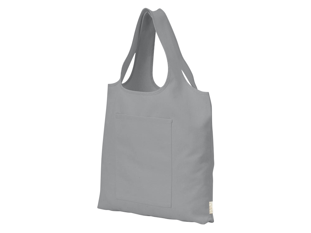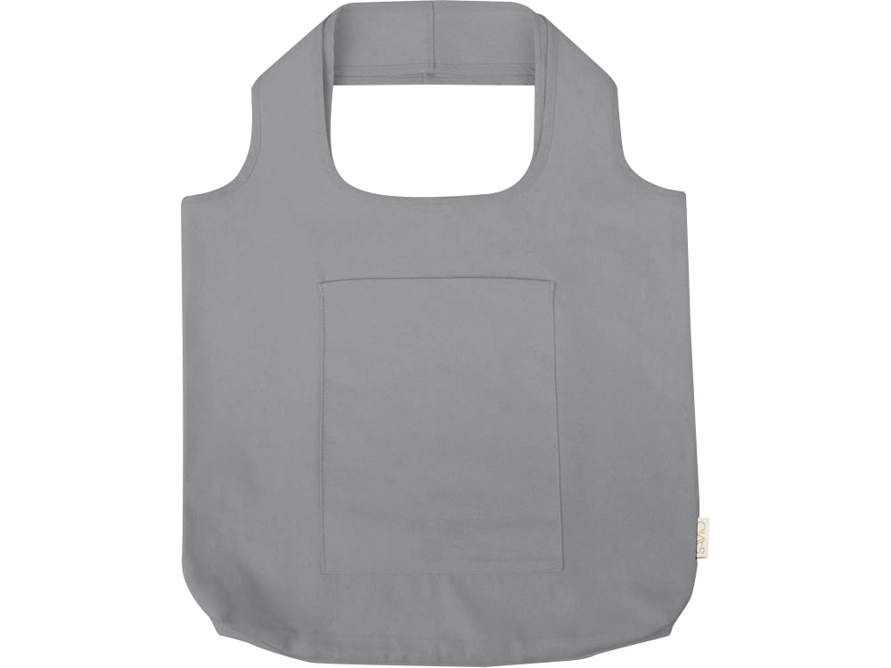 Вместительная сумка-шоппер из очень плотного переработанного хлопка с широкими лямками и большим наружным карманом 20 x 25 см спереди. -