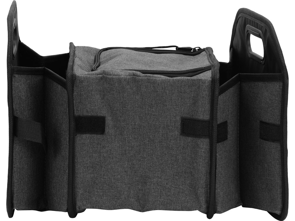 Складной органайзер для багажника от Voyager позволит вам распорядиться пространством в своем багажнике максимально эффективно. Органайзер имеет три больших отделения, одно из которых – на молнии и может использоваться как сумка-холодильник. Это отделение позволяет сохранять температуру внутри отсека благодаря использованию специального термоизолирующего материала. Также органайзер имеет два боковых кармана – сетчатый и непрозрачный, которыми можно воспользоваться даже в сложенном состоянии.