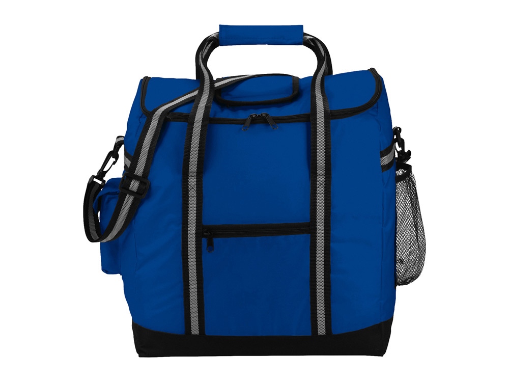 Сумка-холодильник имеет основное отделение на молнии. Передний карман на молнии. Боковой сетчатый карман. Боковой карман с застежкой на липучке. Две усиленные ручки. Съемный регулируемый плечевой ремень. -
