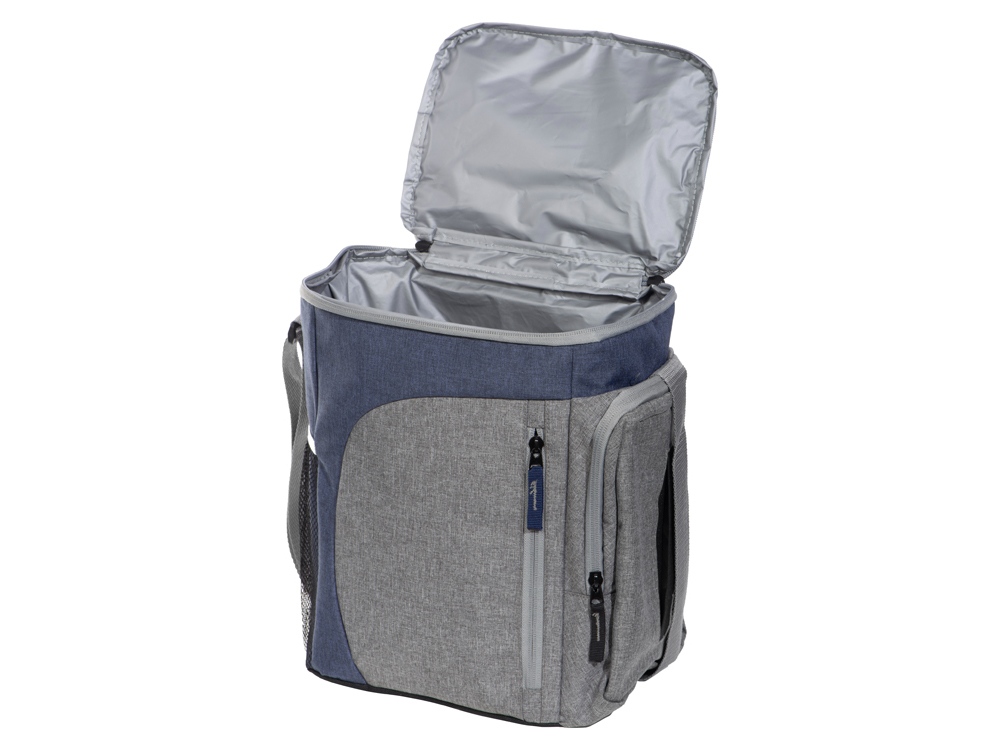 Удобная изотермическая сумка, в которую вы легко можете поместить продукты, несколько ланчбоксов и даже 12-15 банок по 0,33 л. Снаружи сетчатый карман, фронтальный карман для мелочей на молнии, отделение для хранения влажных салфеток и ручка для переноски. Лямка на плечо регулируется по длине. Время поддержания температуры 3-5 ч в зависимости от окружающей температуры. -