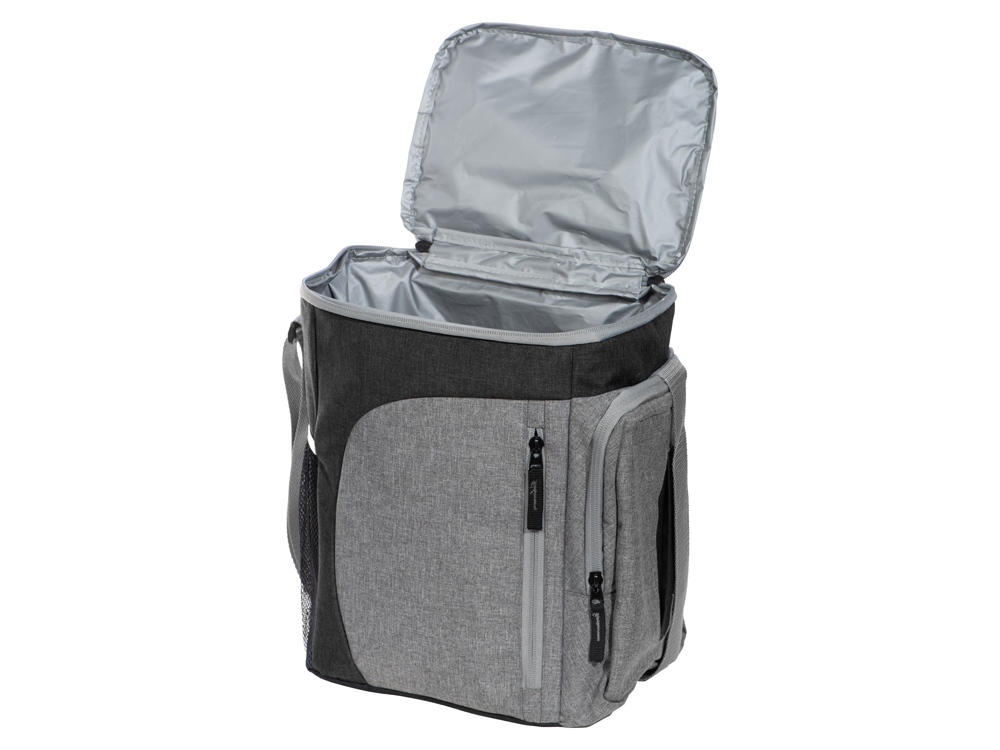 Удобная изотермическая сумка, в которую вы легко можете поместить продукты, несколько ланчбоксов и даже 12-15 банок по 0,33 л. Снаружи сетчатый карман, фронтальный карман для мелочей на молнии, отделение для хранения влажных салфеток и ручка для переноски. Лямка на плечо регулируется по длине. Время поддержания температуры 3-5 ч в зависимости от окружающей температуры. -