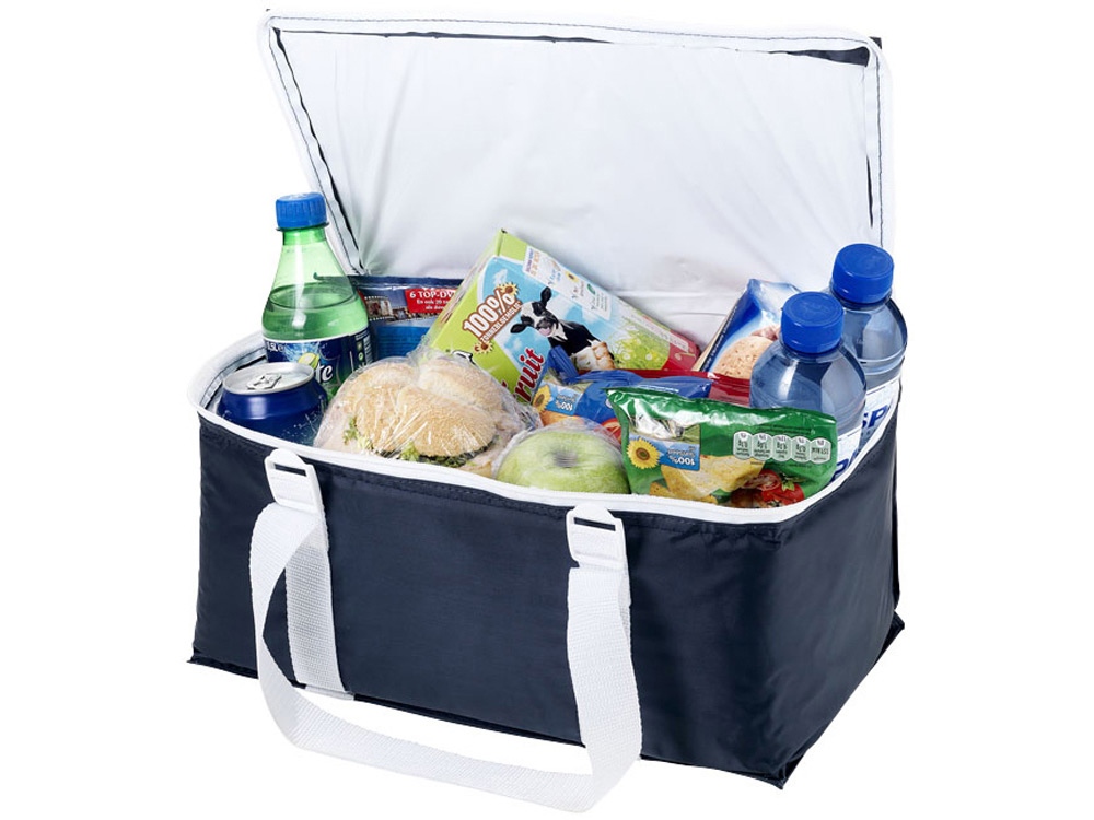 Большая сумка-холодильник на 17л вмещает до 12 банок. Стропу можно использовать для переноски полотенца. -