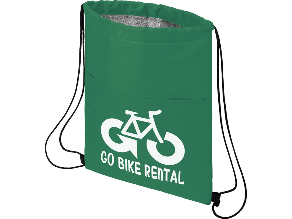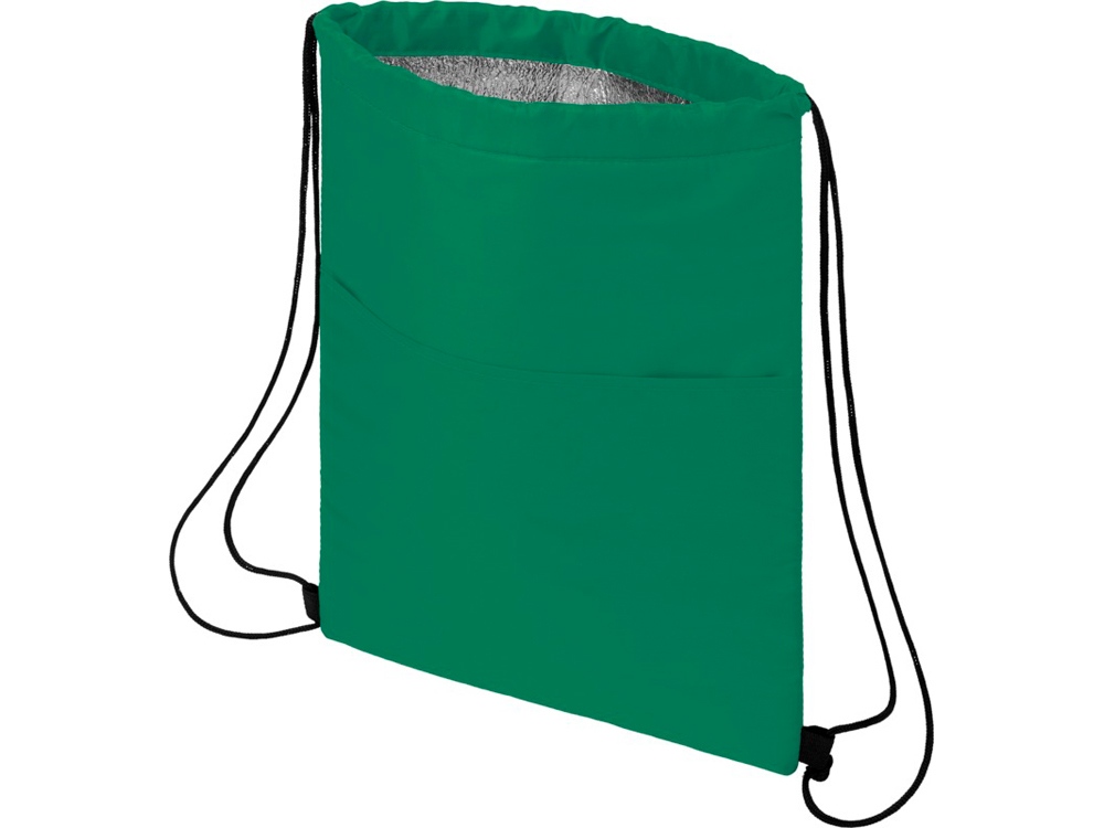 Сумка-холодильник затягивается на шнурок черного цвета. С открытым передним карманом. Вмещает 12 банок. Прочность до 5 кг.