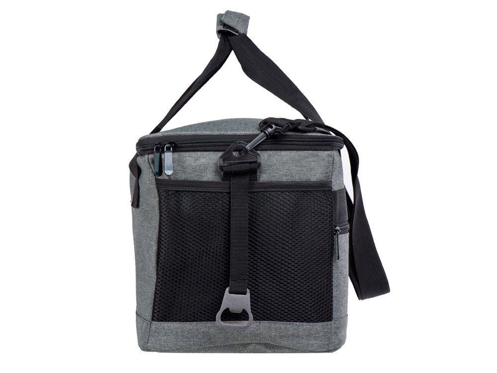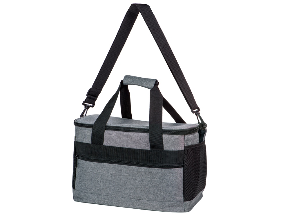 Вместительная сумка-холодильник со специальной конструкцией дна, предотвращающей протекание наружу жидкости от размораживания. Поверхность сумки всегда остается сухой. Основное отделение и карман спереди на молнии. Сбоку 2 сетчатых кармана. Съемный плечевой ремень регулируется по длине. Короткие ручки фиксируются вместе застежкой-липучкой. В комплекте открывалка для бутылок. -