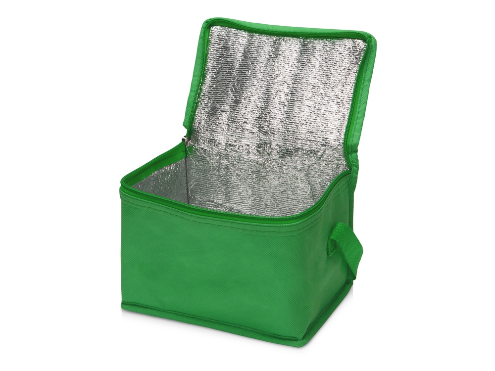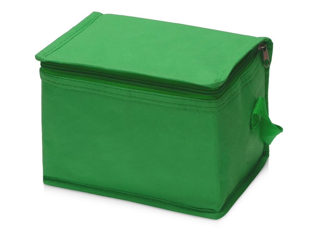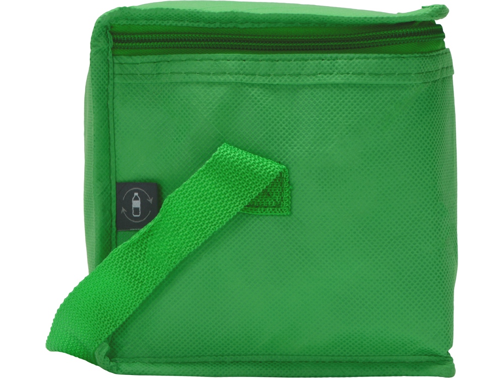 Сумка-холодильник из переработанного пластика. Вмещает 6 банок по 0.33 л. Закрывается на молнию. Удобная ручка для переноски. -