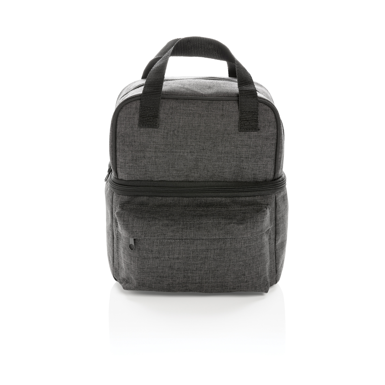 Сумка-холодильник из прочного полиэстера плотностью 600D с удобными ручками для переноски и изолированными отделениями. Просторное верхнее отделение отлично подходит для фруктов, закусок или печенья. В нижнем отделении квадратной формы можно разместить до 6 банок. Передний карман на молнии идеально подходит для небольших аксессуаров, например, для ключей.
