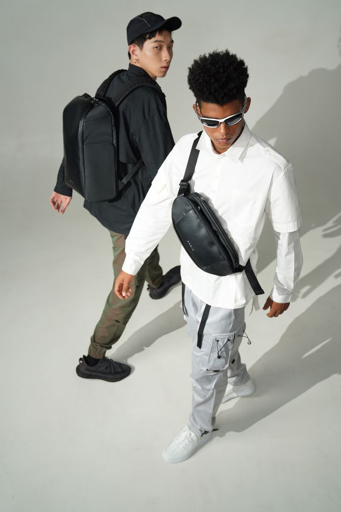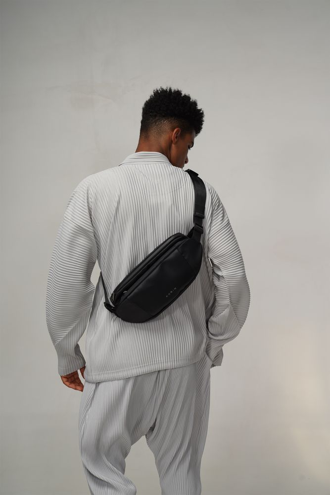 Модная эргономичная наплечная сумка FlipSling cделана из инновационного водоотталкивающего материала, устойчивого к порезам, трению и другим механическим воздействиям, в комбинации с искусственной кожей.