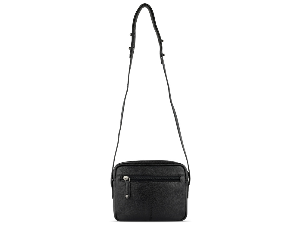 Функциональная организация: основное отделение на молнии с открытым карманом, передний открытый карман, задний карман на молнии, регулируемый плечевой ремень (до 120 см).