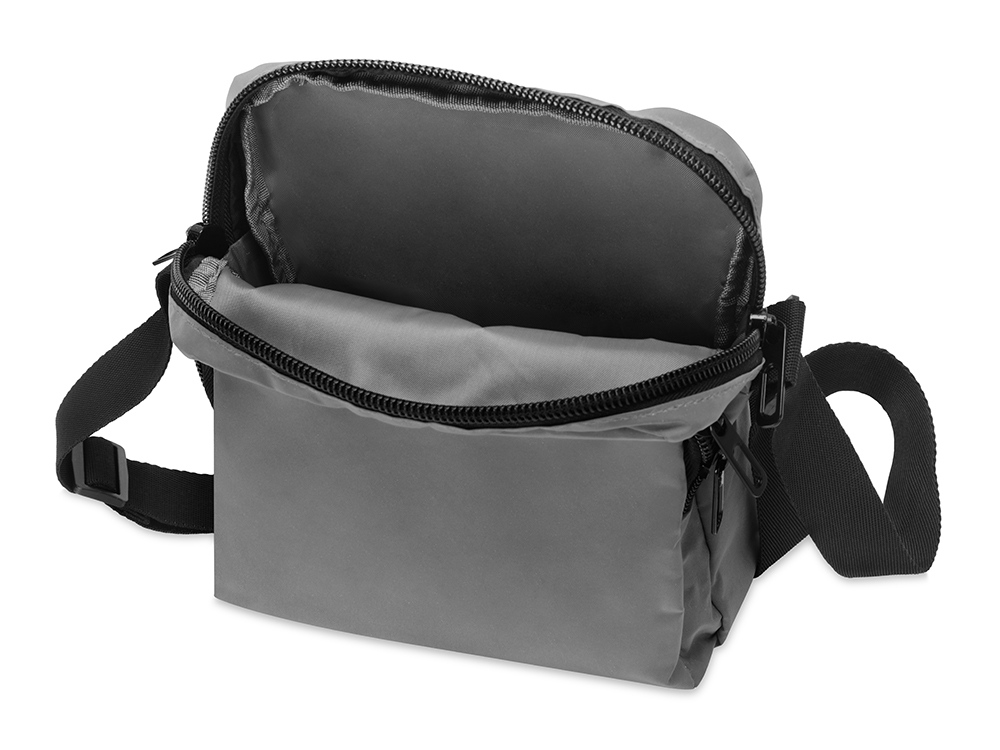 Светоотражающая сумка через плечо обеспечит дополнительную безопасность в темное время суток. Наружный карман на молнии для хранения мелочей. Ремень на плечо 140 см регулируется по длине. -
