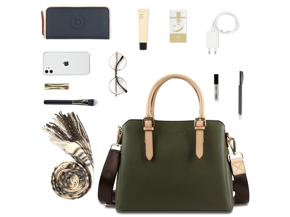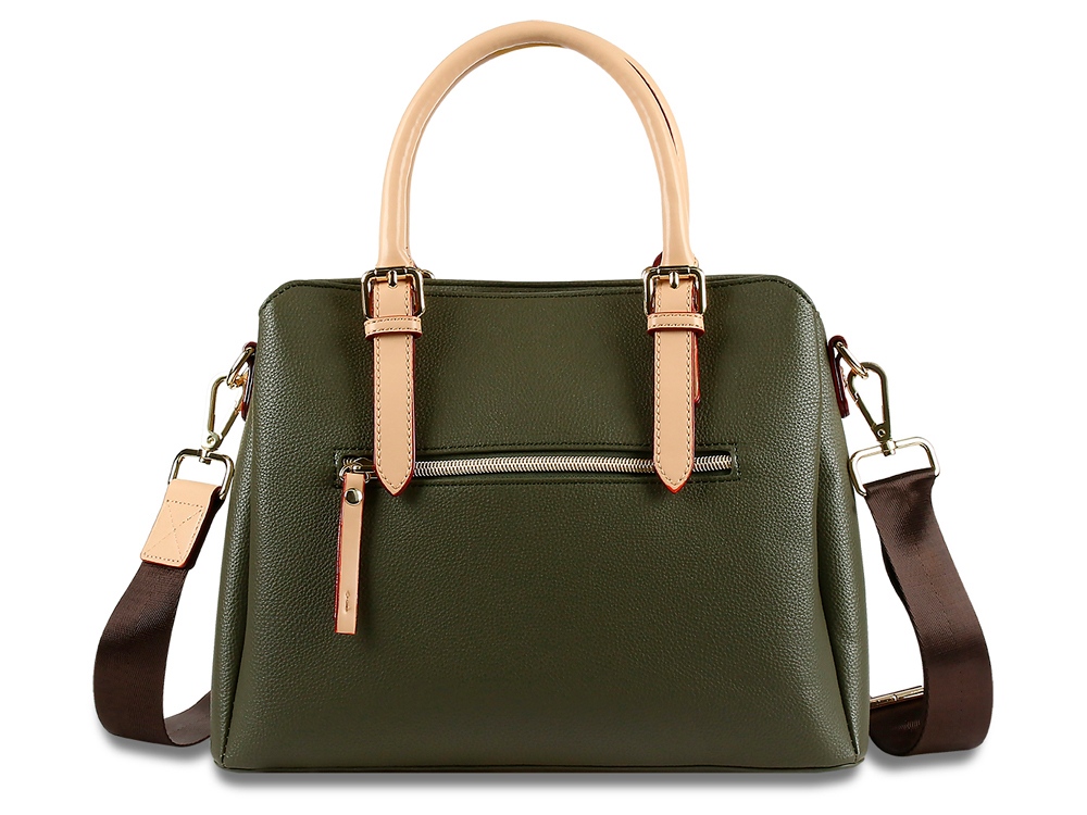 Внешняя организация: задний карман на молнии, ручки высотой 11 см, съёмный регулируемый плечевой ремень (до 130 см), ножки на дне