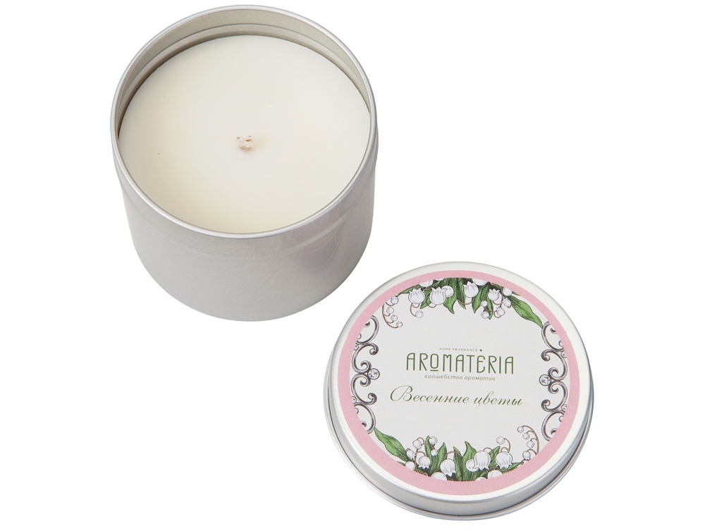 Аромат свечи Весенние цветы открывается свежими нотами апельсинового цвета, мимозы и ландыша, завершая флоральный букет аккордами меда и амбры.