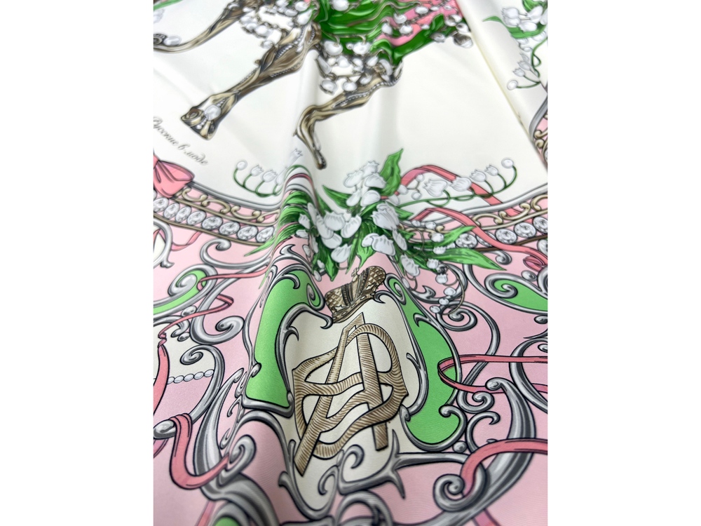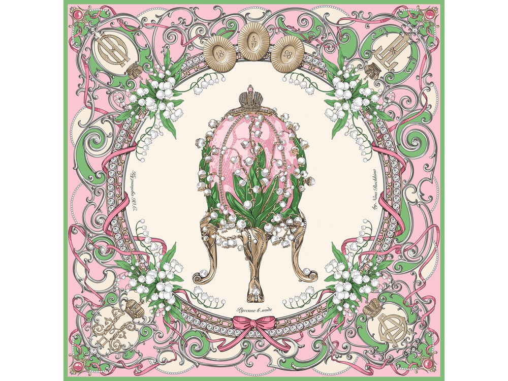 Окутайте себя тонкой дымкой шелка изящного платка Ландыши из серии Фаберже. С любовью и трепетом мы постарались передать филигранность и роскошь шедевра ювелирного искусства, взятого за основу композиции, – подарка Николая II императрице Александре Федоровне на Пасху 1898 года.