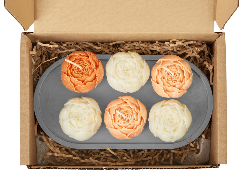 Набор из шести ароматических свечей в форме пионов поможет наполнить ваш дом нежностью и уютом.